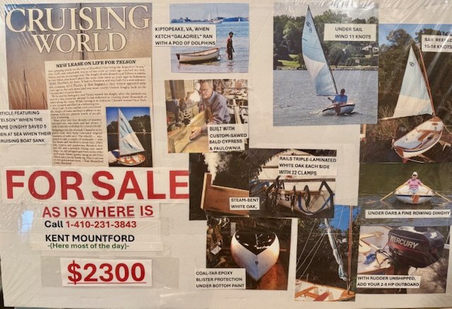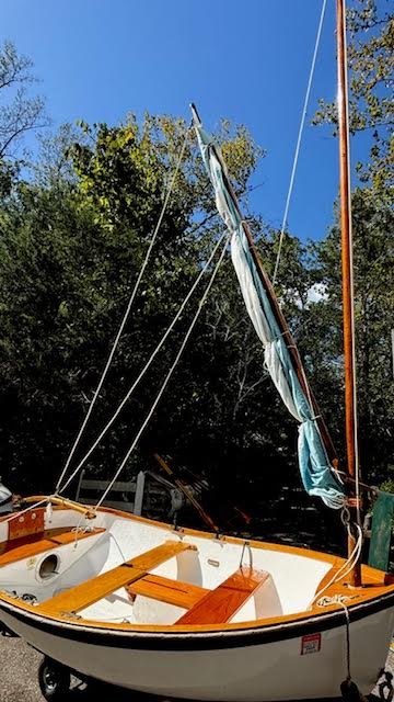 Dinghy before rebuild in 2016 was our cruising dinghy for thousands of miles. This is essentially a new boat, barn stored for 8 years as the owner ages out at 87 years.