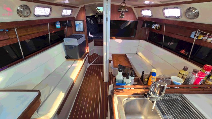 This boat would also make a great live aboard. Plenty of room! I am 61 and can move about comfortably inside.